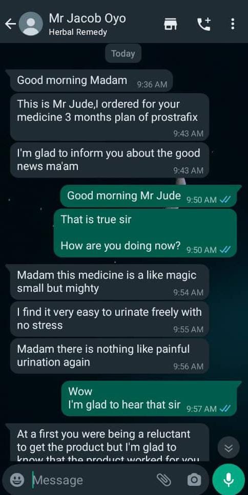 The truth is prostate enlargement is not something you need to joke with……..  a lot of people have died and lost their loved ones, as a man once you are above 30 you need to take your prostate health serious….. before it too late